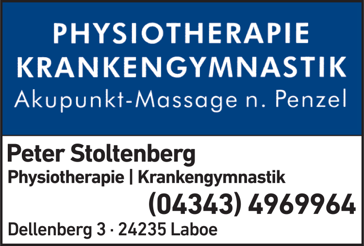 Die Adresse von Stoltenberg Peter Krankengymnastik lautet: Dellenberg 3, 24235 Laboe