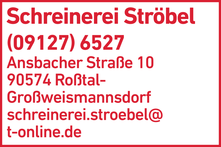 Ströbel Norbert Schreinerei 09127 65 27 Roßtal-Großweismannsdorf Ansbacher Str. 10 90574 Großweismannsdorf