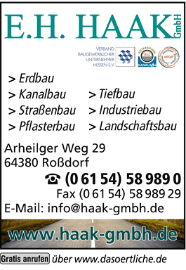 Die Adresse von Straßenbau E.H. Haak GmbH lautet: Arheilger Weg 29, 64380 Roßdorf