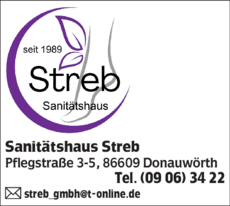 Die Adresse von Streb GmbH lautet: Pflegstr. 3-5, 86609 Donauwörth