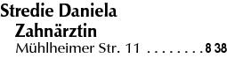 Wie lautet die Adresse von Stredie Daniela?