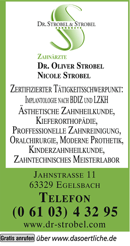Die Adresse von Strobel Oliver lautet: Jahnstr. 11, 63329 Egelsbach
