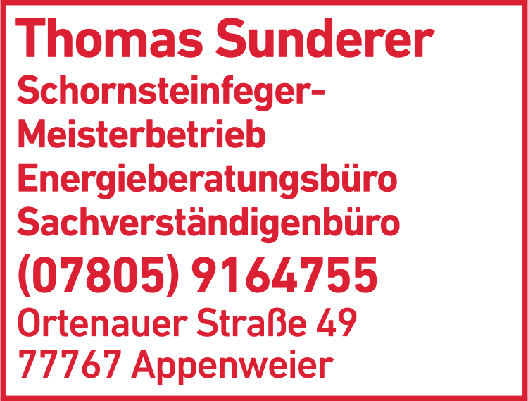 Sunderer Thomas Energieberatungs- & Sachverständigenbüro 07805 9 16 47 55 Appenweier Ortenauer Str. 49 77767