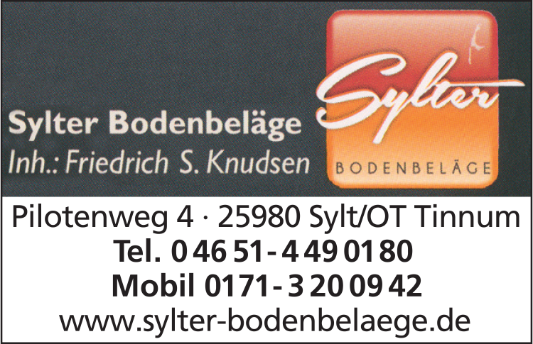 Sylter Bodenbeläge Teppichbodenfachgeschäft 04651 4 49 01 80 Sylt Pilotenweg 4 25980 Tinnum