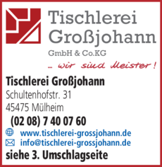Die Adresse von Türen Großjohann lautet: Schultenhofstr. 31, 45475 Mülheim an der Ruhr
