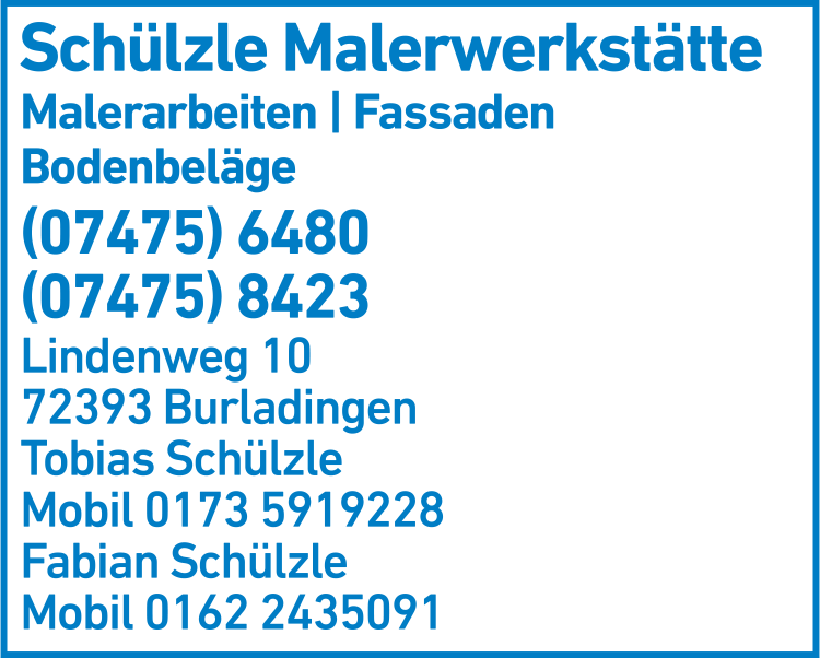 Die Adresse von T & F Schülzle lautet: Lindenweg 10, 72393 Burladingen