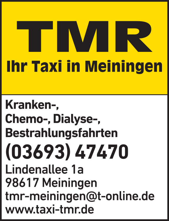 Die Adresse von TMR Taxi lautet: Lindenallee 1 a, 98617 Meiningen