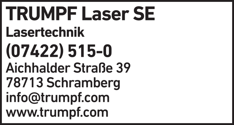Die Adresse von TRUMPF Laser SE lautet: Aichhalder Str. 39, 78713 Schramberg