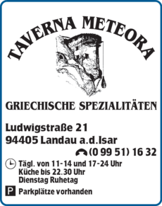 Die Adresse von Taverna Meteora lautet: Ludwigstr. 21, 94405 Landau