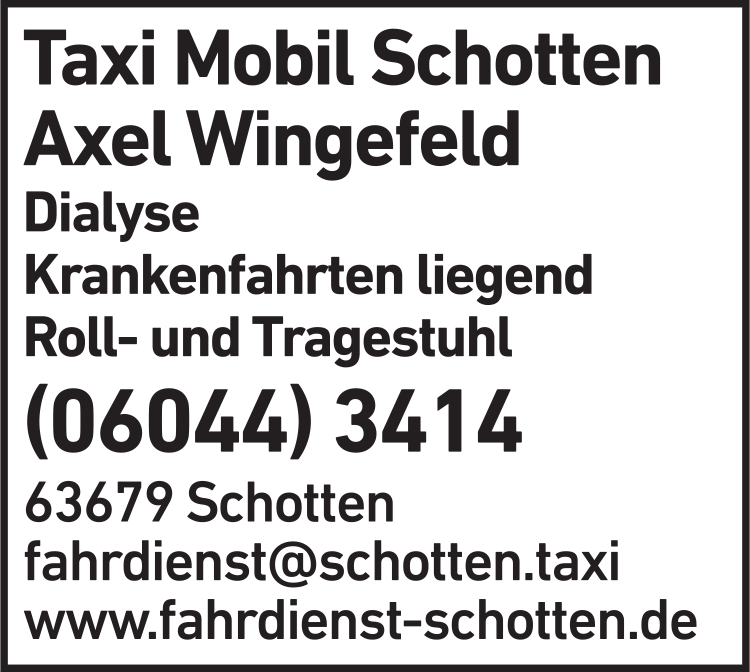 Wie lautet die Adresse von Taxi Mobil Schotten Axel Wingefeld?