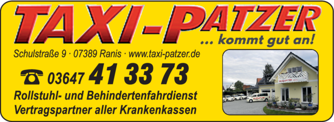 Taxi Patzer bringt Sie mit seinen zuverlässigen Fahrern sicher und schnell an Ihr Ziel. Ich bin Taxiunternehmer Dirk Patzer aus Ranis und möchte Ihnen gerne unsere Fahrdienste vorstellen. Sind Sie als Fahrgast auf einen Rollstuhl angewiesen, steht Ihnen der Rollstuhlfahrdienst zur Verfügung. Damit kommen Sie sicher und problemlos an Ihrem Zielort an. Selbstverständlich führen wir auch Behindertenfahrdienste und Krankenfahrten zur stationären Aufnahme oder Entlassung aus dem Krankenhaus durch. Dialysefahrten oder Fahrten zur Strahlentherapie oder Chemotherapie gehören außerdem zu den Leistungen. Kümmern Sie sich um nichts: Die Abrechnung erfolgt direkt mit der Krankenkasse, der Berufsgenossenschaft oder dem Rententräger. Taxi Patzer bietet Ihnen außerdem Mietwagen für besondere Anlässe.