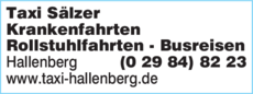 Die Adresse von Taxi Sälzer lautet: 59969 Hallenberg