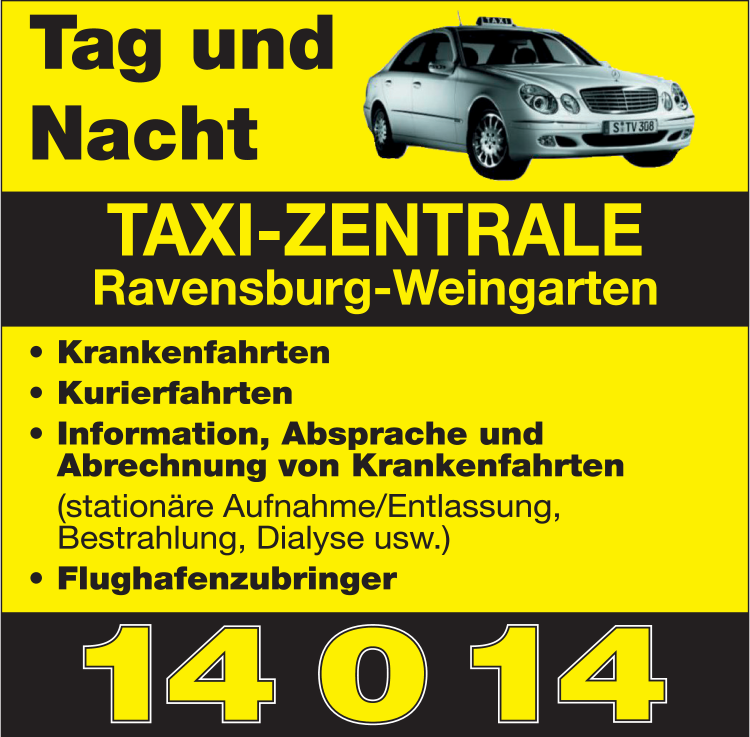 Wie sind die Öffnungszeiten von Taxi-Zentrale Ravensburg-Weingarten?