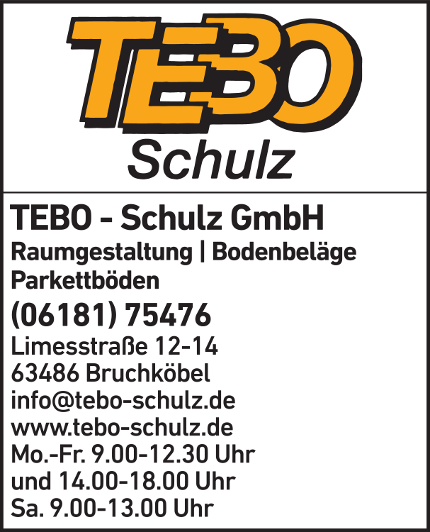 Tebo-Schulz GmbH Raumgestaltung 06181 7 54 76 Bruchköbel Limesstr. 12-14 63486 de.teleauskunft.oetb.webapp2.detail.Graphic@2baf9332