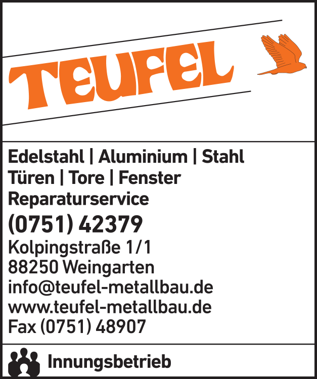 Die Adresse von Teufel Metallbau KG lautet: Kolpingstr. 1/1, 88250 Weingarten