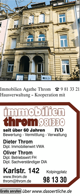 Die Adresse von Throm Agathe lautet: Karlstr. 142, 76137 Karlsruhe