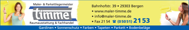 Die Adresse von Timme Thomas lautet: Bahnhofstr. 39, 29303 Bergen
