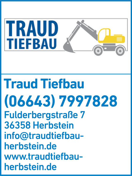 Die Adresse von Traud Tiefbau lautet: Fulderbergstr. 7, 36358 Herbstein