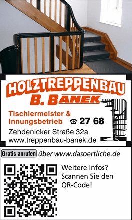Die Adresse von Treppenbau Banek Bernd lautet: Zehdenicker Str. 32, 17268 Templin