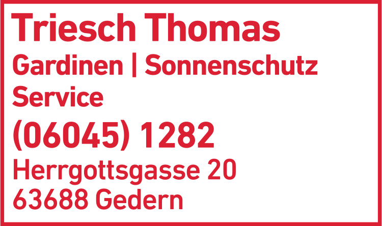 Die Adresse von Triesch Thomas Moderne Raumgestaltung lautet: Herrgottsgasse 20, 63688 Gedern