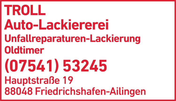 Die Adresse von Troll Alfons Autolackierung lautet: Hauptstr. 19, 88048 Friedrichshafen