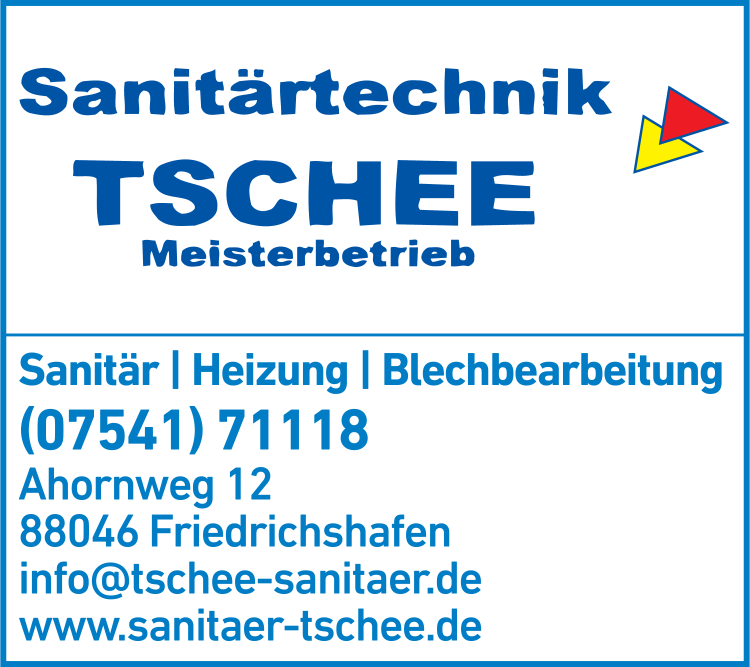 Die Adresse von Tschee Patrick Heizung lautet: Ahornweg 12, 88046 Friedrichshafen