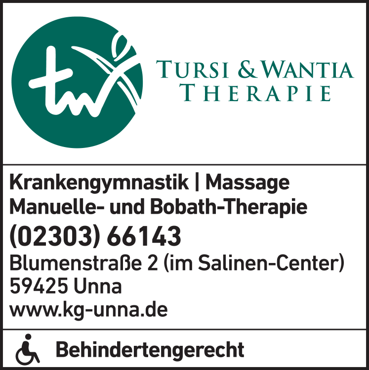 Tursi & Wantia Physiotherapie 02303 6 61 43 Unna Blumenstr. 2 59425 Königsborn