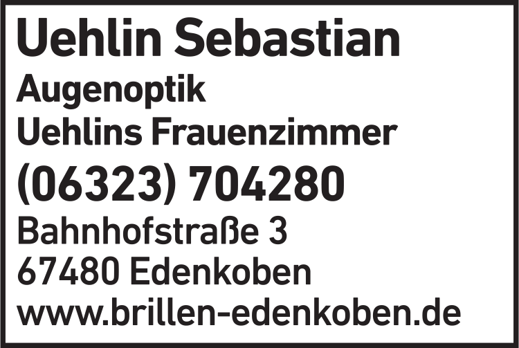 Die Adresse von Uehlin Sebastian Augenoptik lautet: Bahnhofstr. 3, 67480 Edenkoben