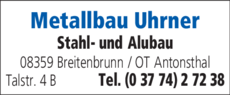 Uhrner Jörg Metallbau 03774 2 72 38 Breitenbrunn Talstr. 4 B 08359 Antonsthal