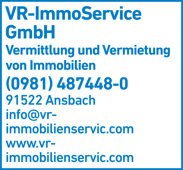 Die Adresse von VR-ImmoService GmbH Immobilien lautet: Promenade 17, 91522 Ansbach