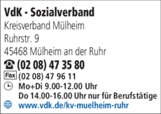 VdK - Sozialverband 0208 47 35 80 Mülheim an der Ruhr Ruhrstr. 9 45468 Mitte