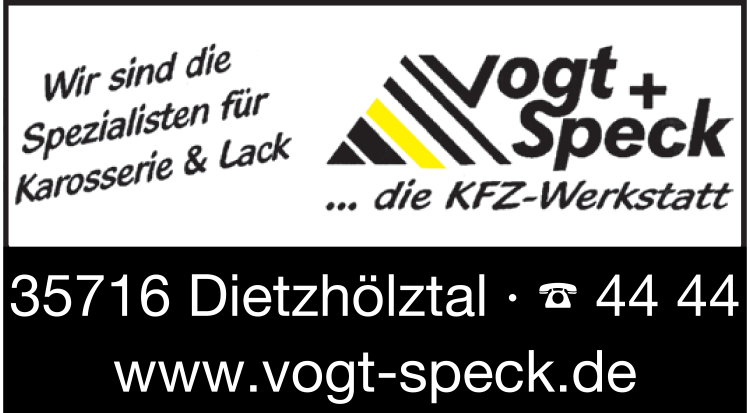 Die Adresse von Vogt + Speck Kfz Meisterbetrieb lautet: In der Heg 7, 35716 Dietzhölztal
