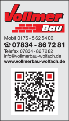 Die Adresse von Vollmer Bau lautet: Langenbach 3, 77709 Wolfach