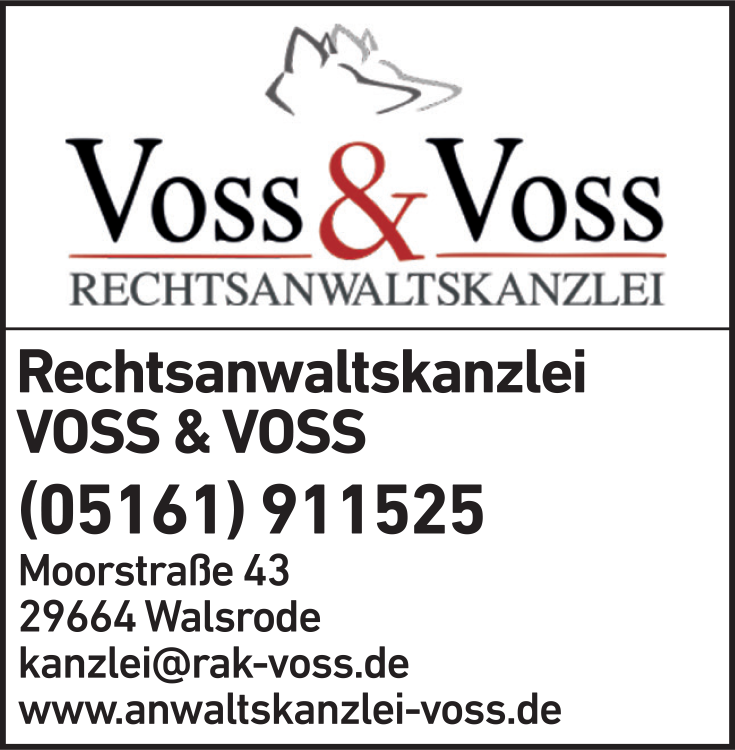 Die Adresse von Voss & Voss Rechtsanwälte lautet: Moorstr. 43, 29664 Walsrode
