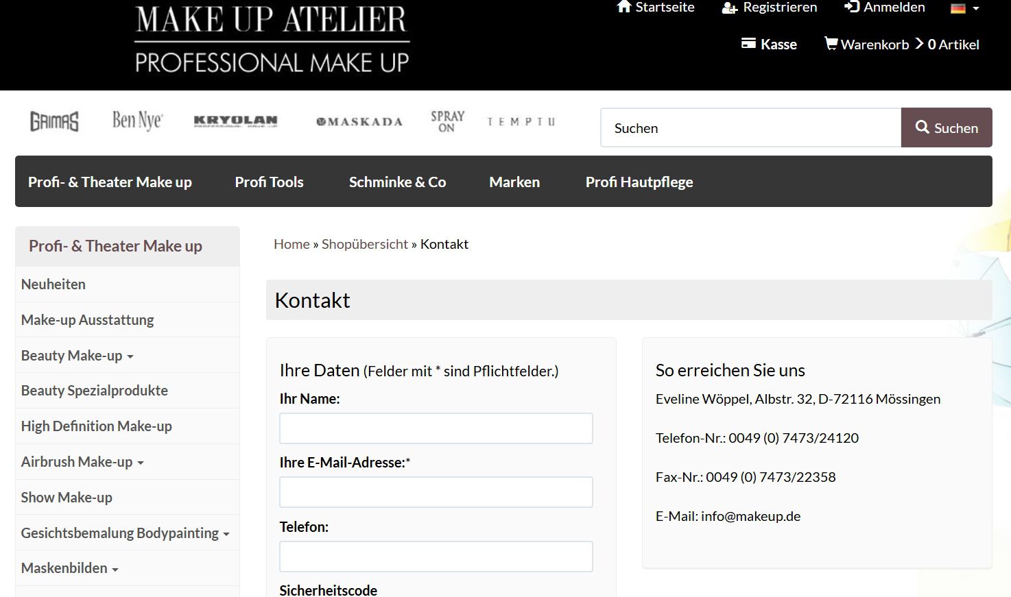 Wöppel Eveline , M. Make-up Atelier Theatermake-up führt die Marke(n) Grimas, Ben Nye und Kryolan.