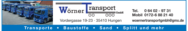 Wörner Transport GmbH 06402 97 31 Hungen Vordergasse 19-23 35410 Bellersheim