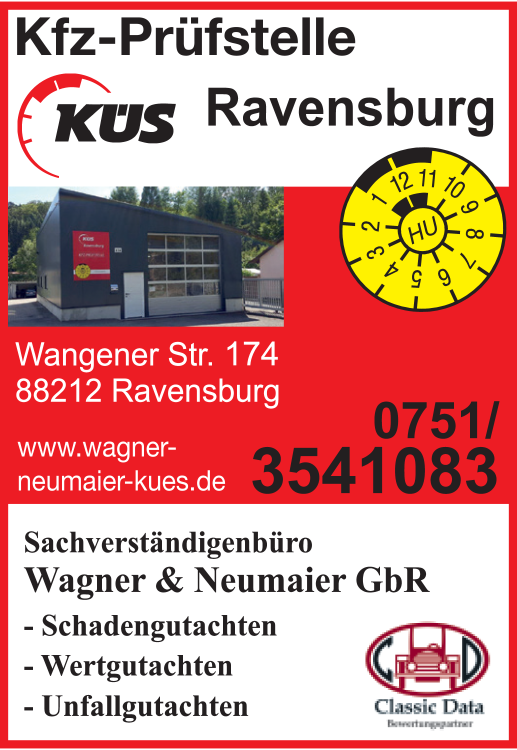 Die Adresse von Wagner & Neumaier GbR lautet: Wangener Str. 174, 88212 Ravensburg