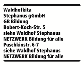 Wie lautet die Adresse von Waldhofkita Stephanus gGmbH GB Bildung?