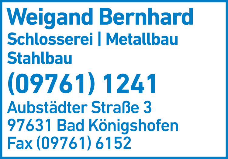 Wie lautet die Adresse von Weigand Bernhard Stahl- und Metallbau?