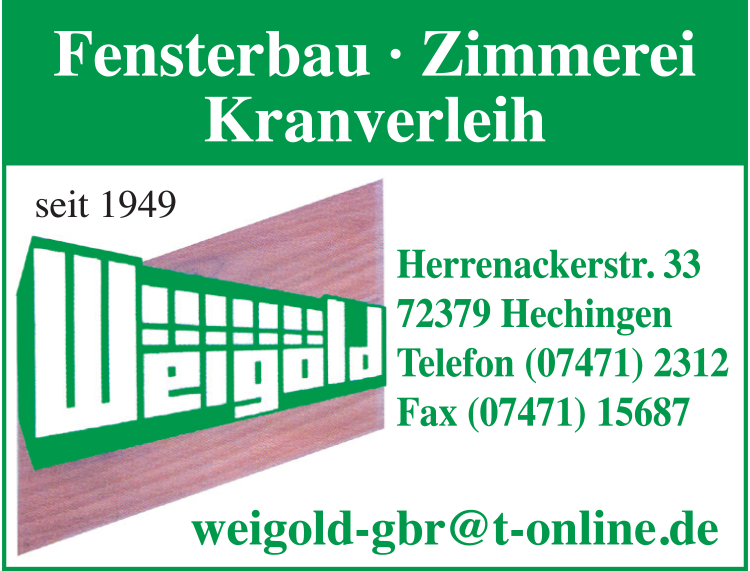 Die Adresse von Weigold GbR Fensterbau lautet: Herrenackerstr. 33, 72379 Hechingen