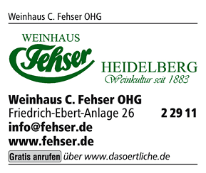 Die Adresse von Weinhaus C. Fehser OHG lautet: Friedrich-Ebert-Anlage 26, 69117 Heidelberg