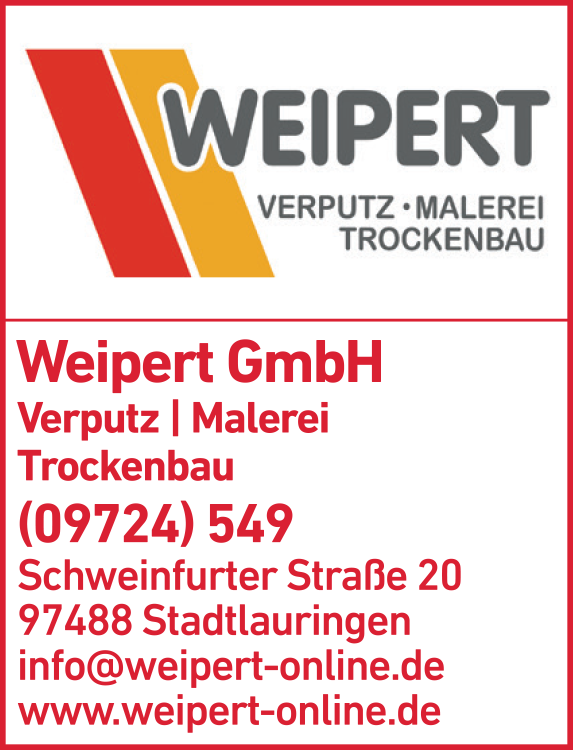 Die Adresse von Weipert GmbH Malerei lautet: Schweinfurter Str. 20, 97488 Stadtlauringen