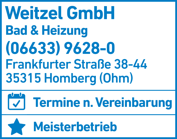 Die Adresse von Weitzel GmbH Heizung lautet: Frankfurter Str. 38-44, 35315 Homberg (Ohm)