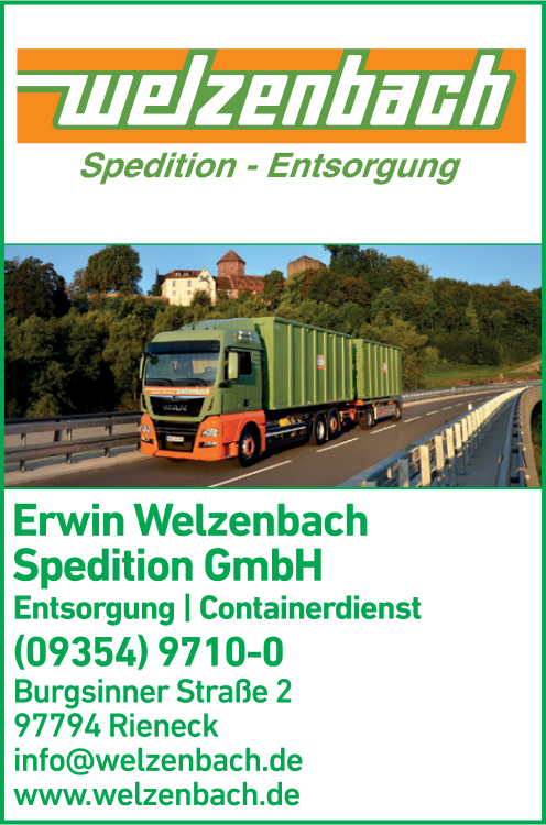 Die Adresse von Welzenbach Erwin Spedition GmbH lautet: Burgsinner Str. 2, 97794 Rieneck