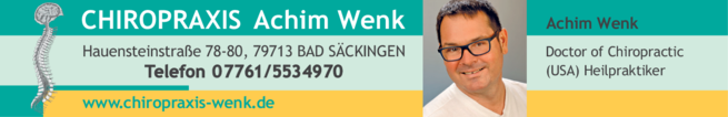 Wenk Achim D.C. Doctor of Chiropractic (USA) 07761 5 53 49 70 Bad Säckingen Hauensteinstr. 78-80 79713 de.teleauskunft.oetb.webapp2.detail.Graphic@25ab1de8 5 5 2