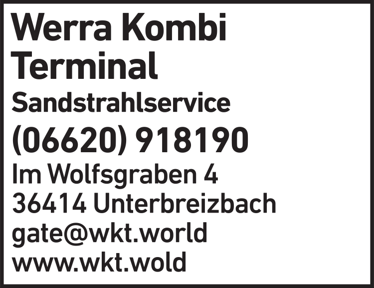 Die Adresse von Werra Kombi Terminal Betriebsgesellschaft mbH lautet: Im Wolfsgraben 4, 36414 Unterbreizbach