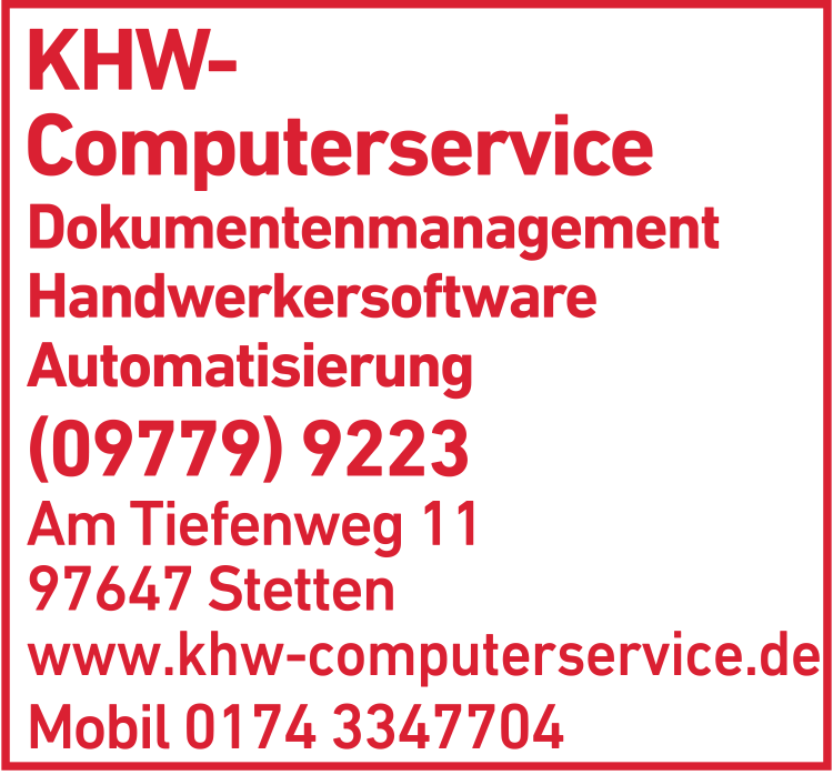 Weyrich Karlheinz KHW-Computerservice führt die Marke(n) Tarox, HP, Canon, Docuware, Tobit, Top Kontor, Primeur, Ideal und Lexware.