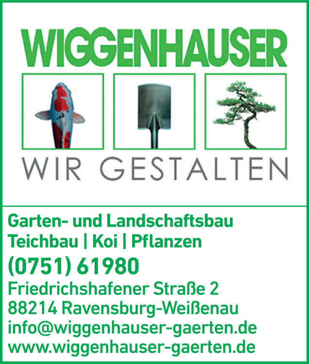 Wiggenhauser Gartenbau GmbH 0751 6 19 80 Ravensburg Friedrichshafener Str. 2 88214 Weißenau de.teleauskunft.oetb.webapp2.detail.Graphic@590d956e