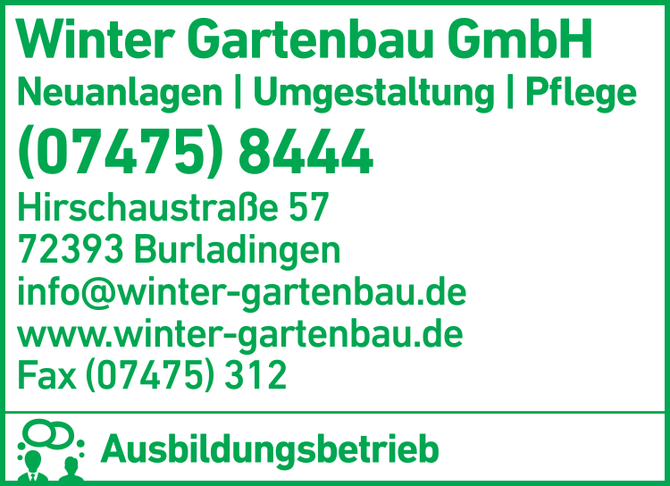 Die Adresse von Winter Gartenbau GmbH lautet: Hirschaustr. 57, 72393 Burladingen