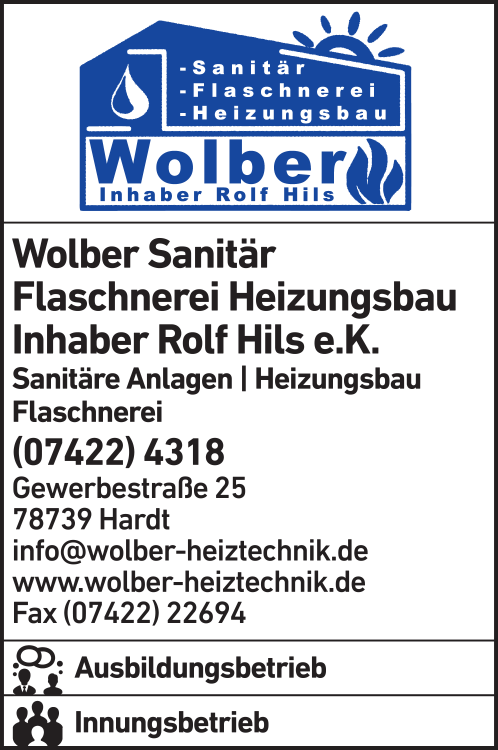 Wolber Sanitär, Flaschnerei, Heizungsbau Inh. Rolf Hils e.K. 07422 43 18 Hardt Gewerbestr. 25 78739